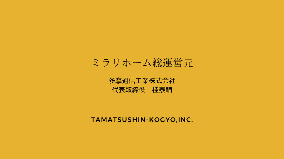 ミラリホーム総運営元 多摩通信工業株式会社 代表取締役 桂泰輔